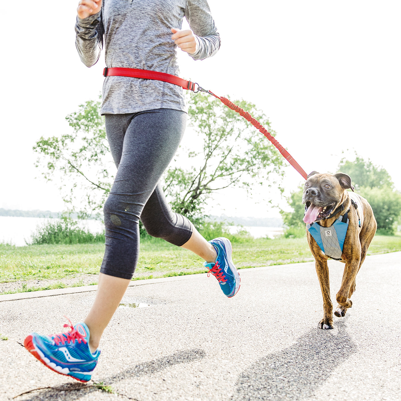 伸び縮みするウエスト巻きのリードで愛犬との距離を適度に保てます。
