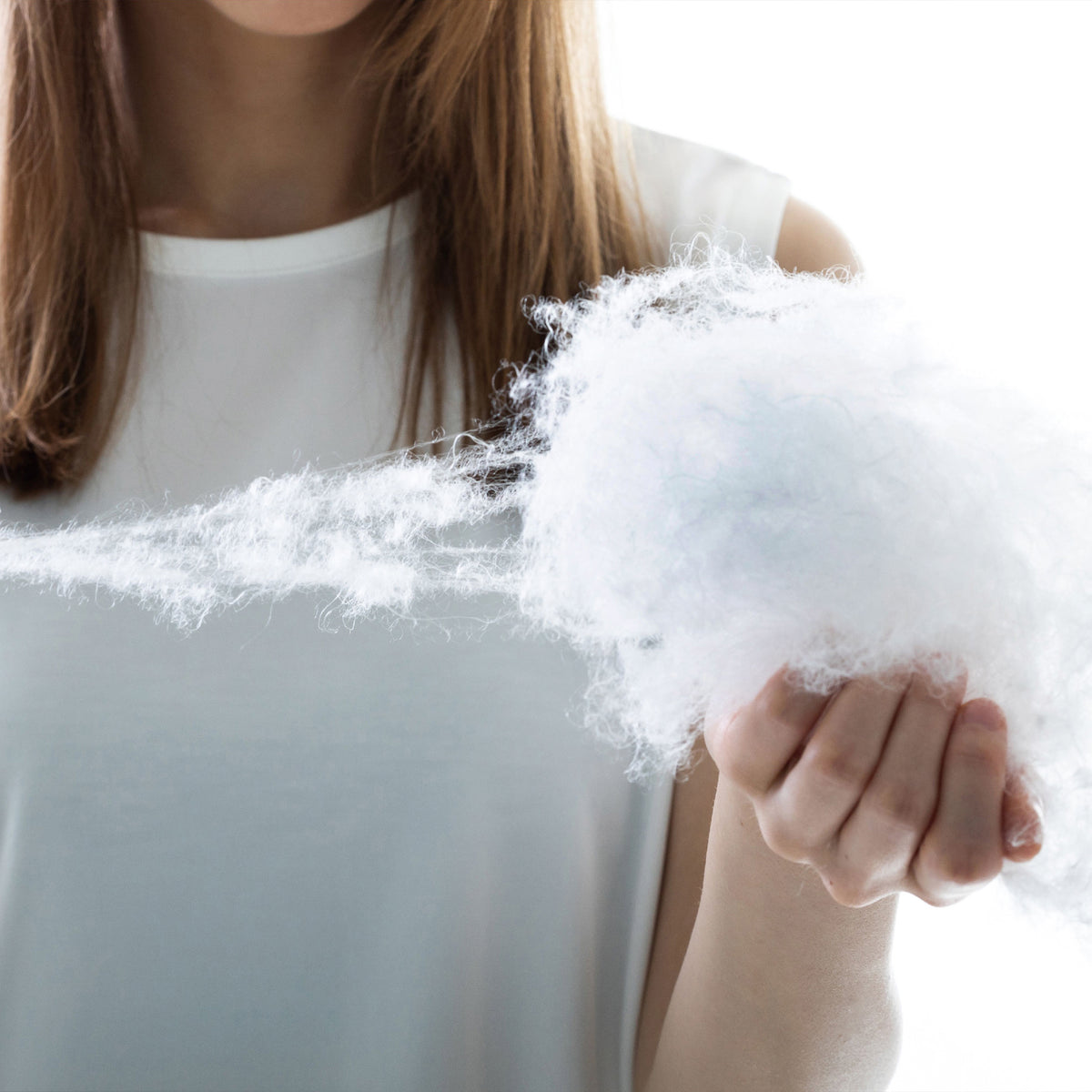 北極圏に生息するアイダーダックの羽毛の特性や形状を分析し生まれたAIR FLAKE®。その特徴は「かさ高」で天然ダウンに匹敵する850FPを叩き出しています。