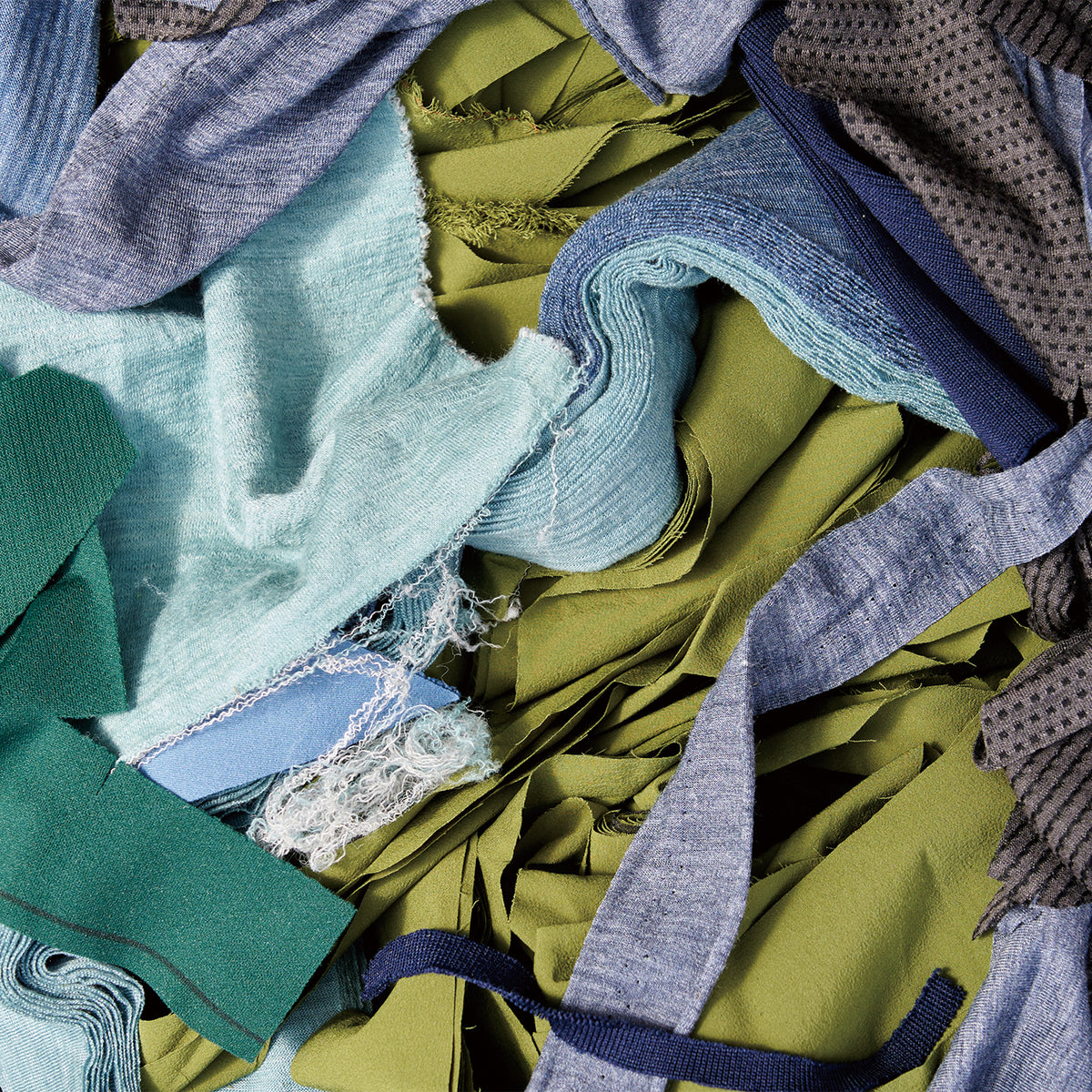 裁断屑とSTATICの回収品をポリエステル繊維に再生し、新たなポリエステル製品を生み出す。